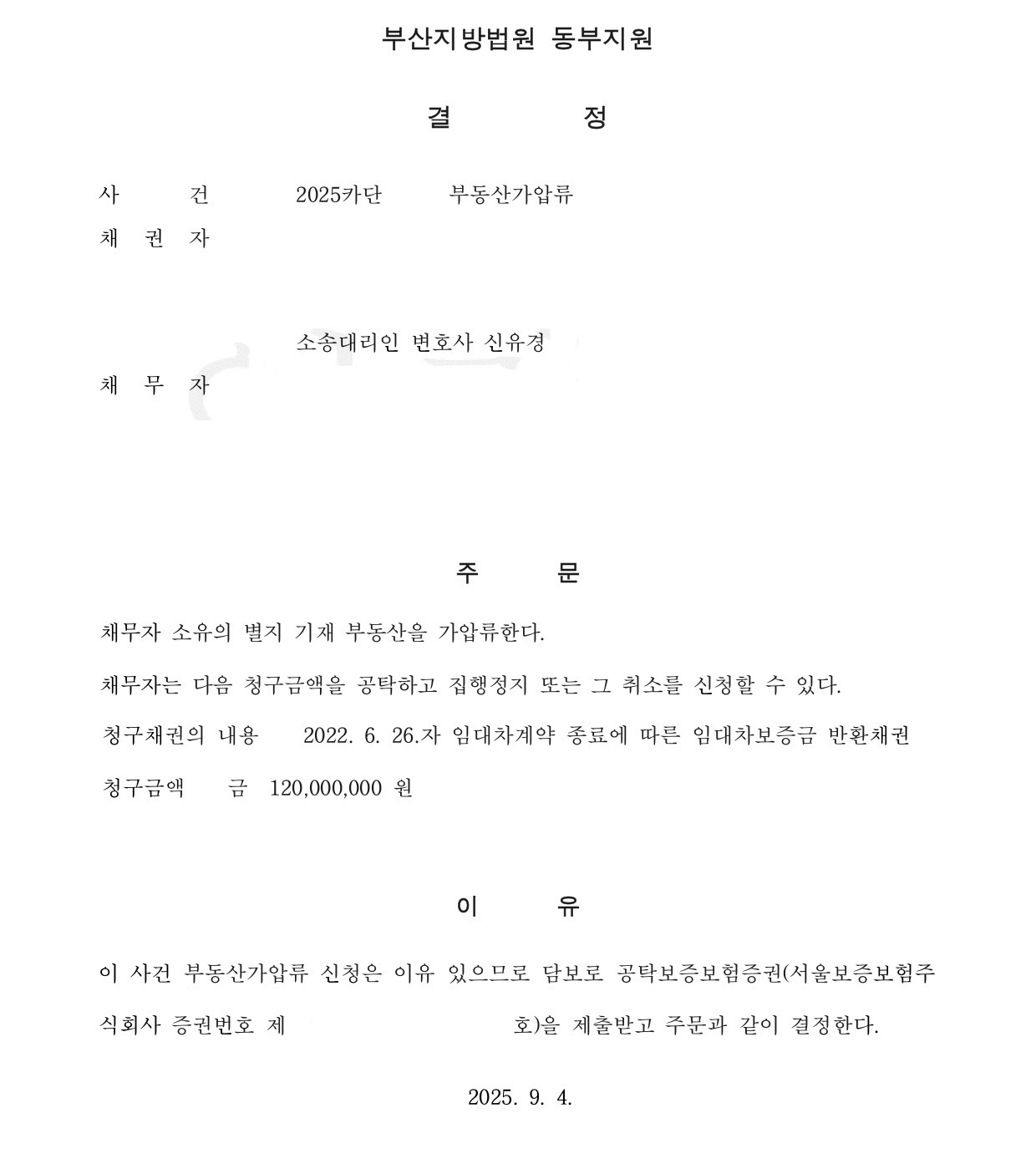 부동산 가압류를 인용받은 성공사례를 소개합니다