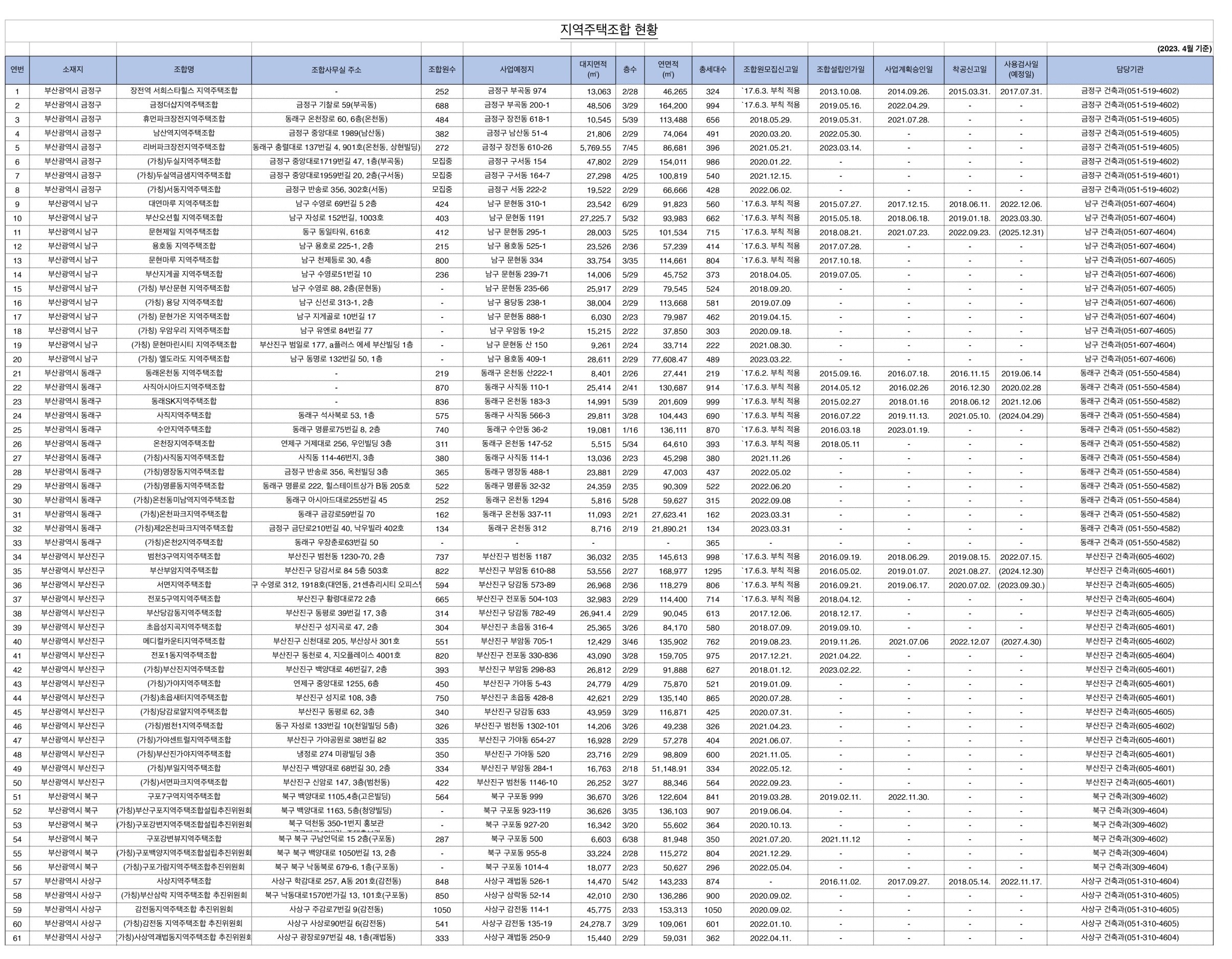 부산광역시에서 확인한 최신 부산 지역 내 지역주택조합추진 현황을 게시합니다.